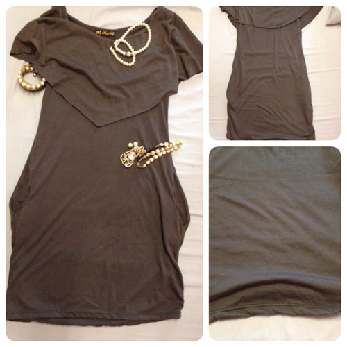 เดรสสีเทา ผ้าหนานุ่ม รัดตามรูปทรง ผ้ายืดได้ รอบอก 30" รอบเอว 25" สะโพก 36" ความยาว 35"