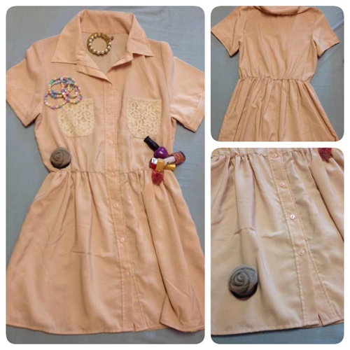 เสื้อเชิ้ตตัวยาว หรือใส่เป็นเดรสสั้นได้ สีชมพูหวาน รอบอก 35" รอบเอว 24"