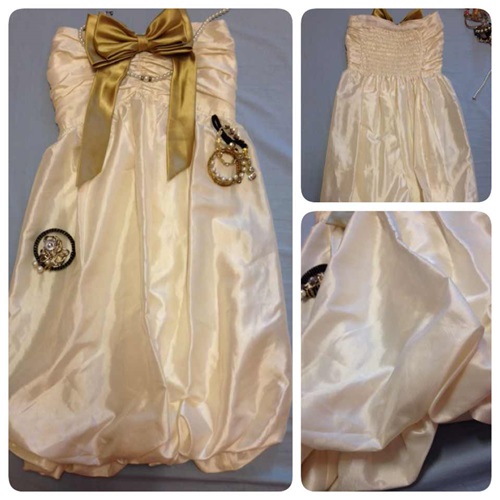 เดรสเกาะอก สีขาวมุก ทรงบอลลูน คาดโบทอง รอบอก 28" (จัมพ์หลัง) ความยาว 30 "