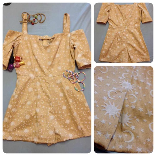 จั้มสูท ลายดาว ผ้าหนา ไม่เคยใส่เลย รอบอก 35" รอบเอว 24" สะโพก 37" ความยาว 31" ราคา 100 บาท