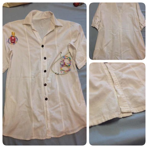 เสื้อเชิ๊ตยาว สีขาว ผ้าเนื้อดี รอบอก 38" ความยาว 30" ราคา 100 บาท