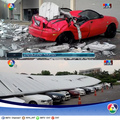 เพราะล่าสุดมีข่าวหลังคาถล่มลงมาโดนรถติด ๆ กันเลย ทั้งใน กทม. และ ชลบุรี รวมถึงที่อื่น ๆ ที่ไม่เป็นข่าว