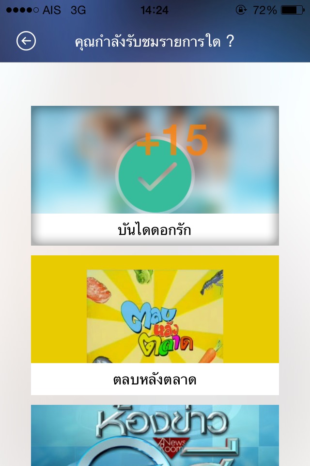กด เชคดินถูกต้องตามรายการที่กำลังดูอยู่ จะได้ 15+ Point (ตอนนี้ดูละครเรื่อง บันไดดอกรัก)