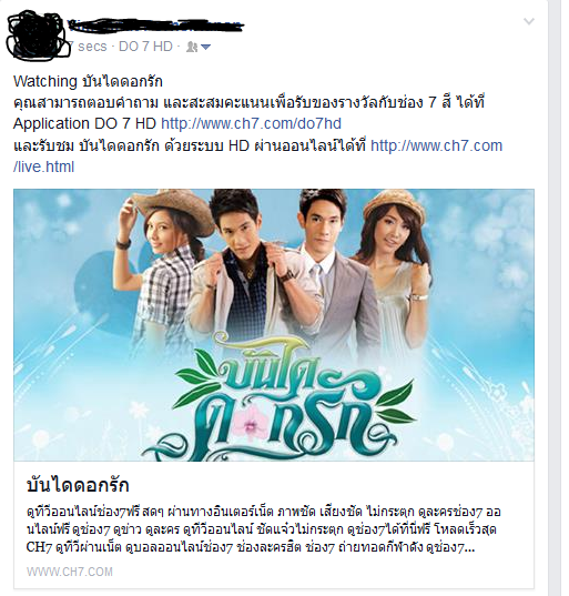 หน้านี้คือ เมื่อเวลาเรากดเชคอินแล้ว มันจะไปโชว์ใน Facebook ของเราแบบนี้เลยจ้า