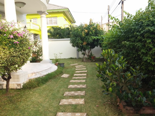 สนามหญ้าที่บ้านไม่ค่อยได้ดูแลเท่าไหร่ค่ะ ปล่อยไปตามมีตามเกิด จ้างคนสวนมาตัดหญ้าเดือนละครั้งเท่านั้น เลยมีเจ้าหญ้าแห้วหมูขึ้นเต็มเลยค่ะ... น่าจะปาไปครึ่งสวนแล้ว ปูหญ้ามาเลย์เป็นพื้นเดิมค่ะ แต่โดนเจ้าแห