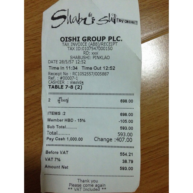 มาดูที่ใบเสร็จอีกที เห็นเขียนว่า member hbd 15% ก็เลยงงๆว่า 15%ที่พี่เค้าบอกจะลดให้นี่คือลดให้จริงๆ หรือว่าใช้สิทธิ์ในบัตรเราเอง