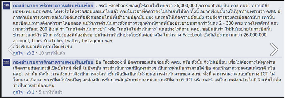ข้อมูลจากทาง คสช. ... กรณี Facebook เข้าใช้งานไม่ได้ ... ครับ
