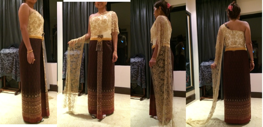 อึดอัดนิดเดียวตรงที่ให้แฟนเห็นชุดไม่ได้จนกว่าจะถึงงาน (เป็นธรรมเนียม) เลยอวดไม่ได้ ปรึกษาไม่ได้ แต่ก็ต่อรองให้ช่วยถ่ายรูปชุดไทยให้หน่อย เพราะเราตื่นเต้นกับมันมาก