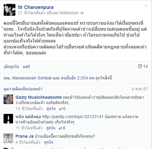 กระทู้ให้กำลังใจทราย เจริญปุระ และ ข้อเท็จจริงเรื่องที่คุณทรายโดนกล่าวหา