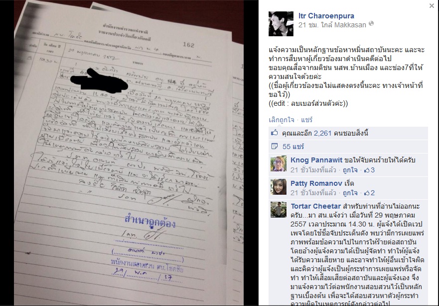 ล่าสุดทรายได้เข้าแจ้งความไปแล้วค่ะ