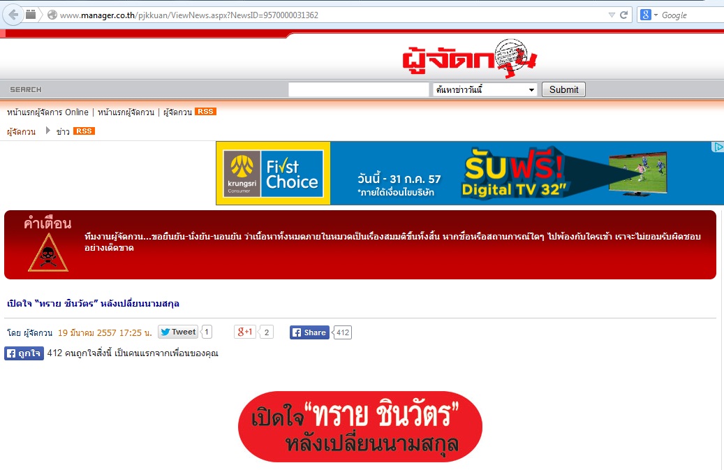 อีกเรื่องคือเรื่องที่คุณทรายเปลี่ยนนามสกุล ข่าวมาจากเว็บผู้จัดกวน เป็นเว็บเต้าข่าวนะคะ ไม่ใช่ความจริง ดูในกรอบสีแดงนะคะ