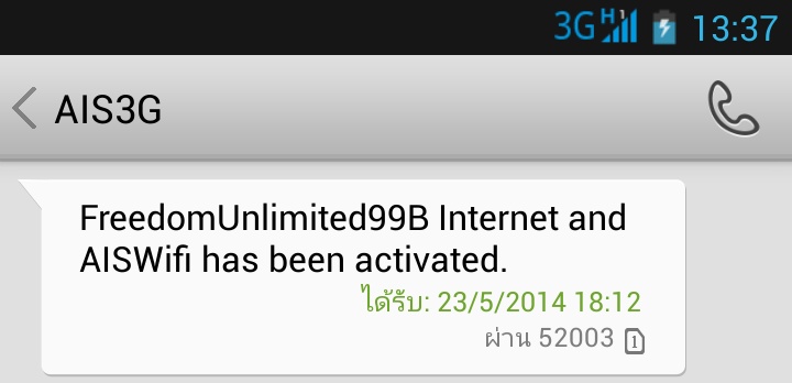 ท่านจะได้รับ 3G Pack99B Internet 3GB 30days เน็ตวันทูคอล 99 บาท 30 วัน โปรเน็ต AIS รายเดือน 99 บาท 30 วัน สมัคร เน็