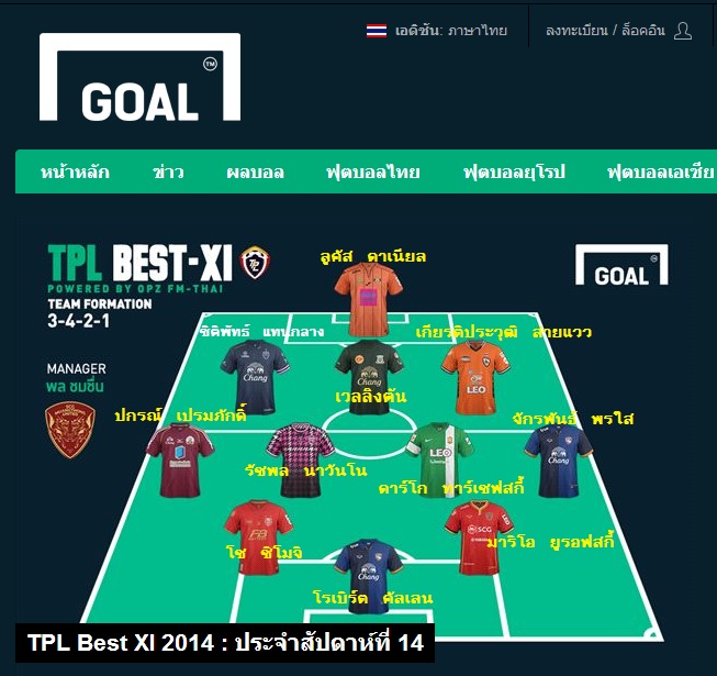 TPL Best XI 2014 : ประจำสัปดาห์ที่ 14 by Goal.com