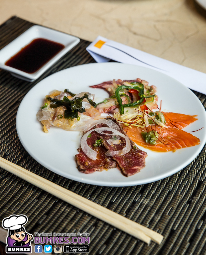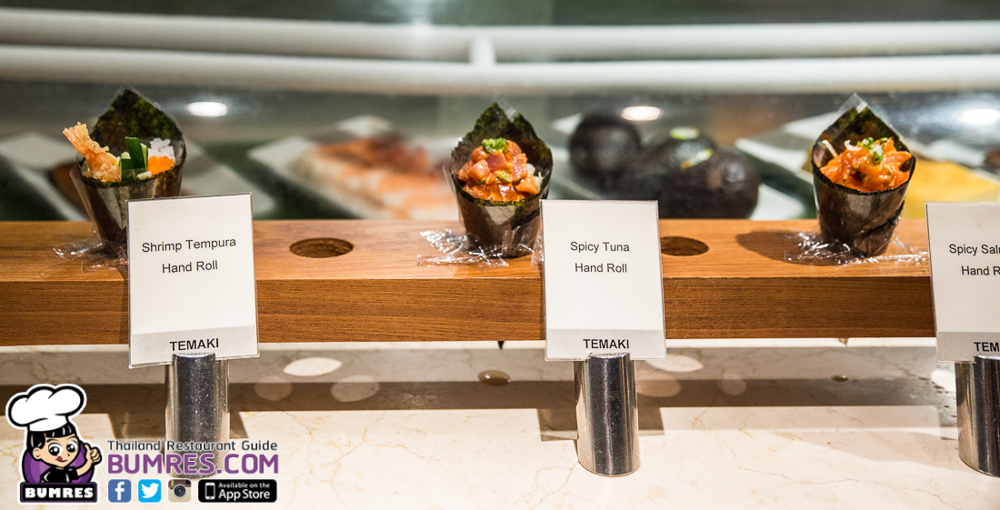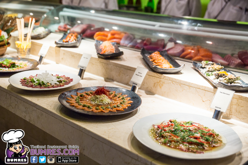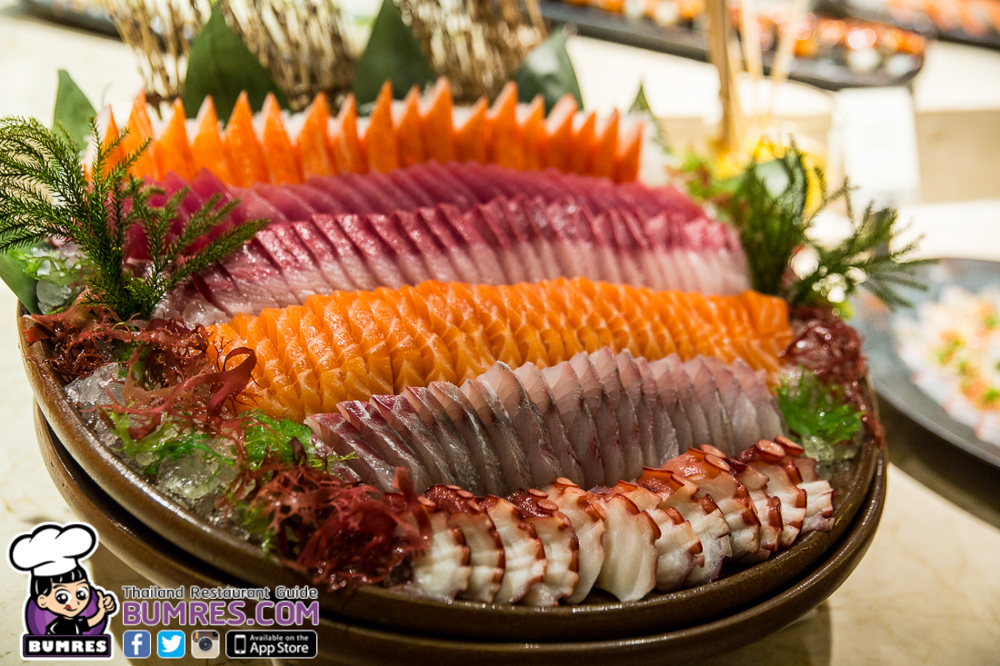 มาพูดถึงเรื่องอาหารกัน อาหารที่นี่ก็แบ่งได้ประมาณ 9 ประเภท คือ ซาชิมิ, ซูชิ และ โรล, Teppanyaki, Cold Seafood, Tempura, Salad & Soup, อุด้ง & โซบะ, ของหวาน และ เครื่องดื่ม เราลองไปดูทีละประเภทกันเลย