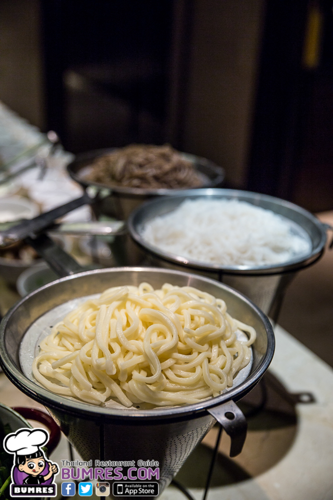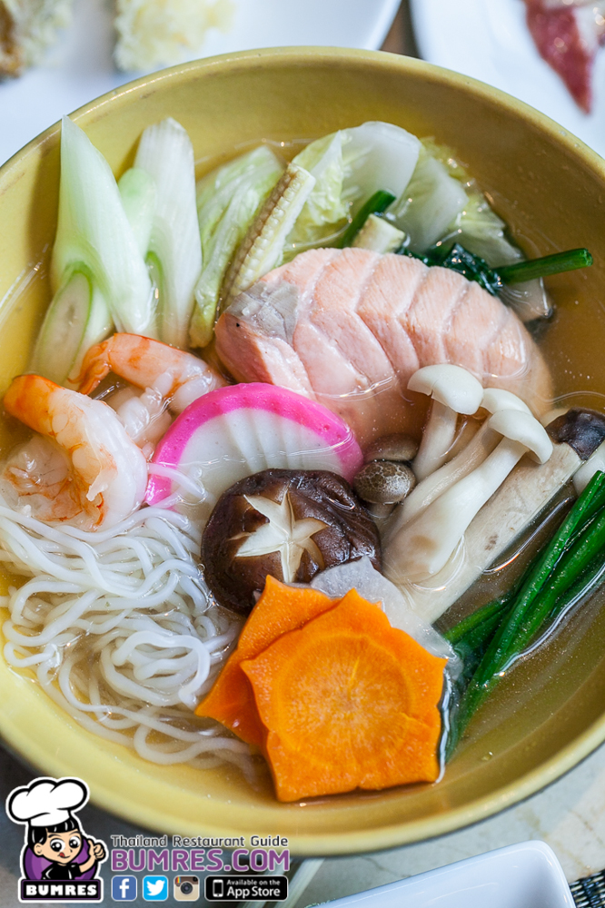 ก็มีให้เลือกเยอะเหมือนกัน เลือกได้ตั้งแต่เนื้อ หมู ซีฟูดส์ และก็เลือกเส้นได้ว่าจะเอาเส้นแบบอุด้ง หรือโซบะ หรือเส้นบุก รสชาติยังรู้สึกว่าธรรมดาไปหน่อย แต่ทำมาร้อน ๆ ก็ซดให้คล่องคอได้ดีอยู่ หรือจะให้ทำมาเป็นแบบชาบู ชาบูก็ได้ครับ เนื้อนุ่มอร่อยดี