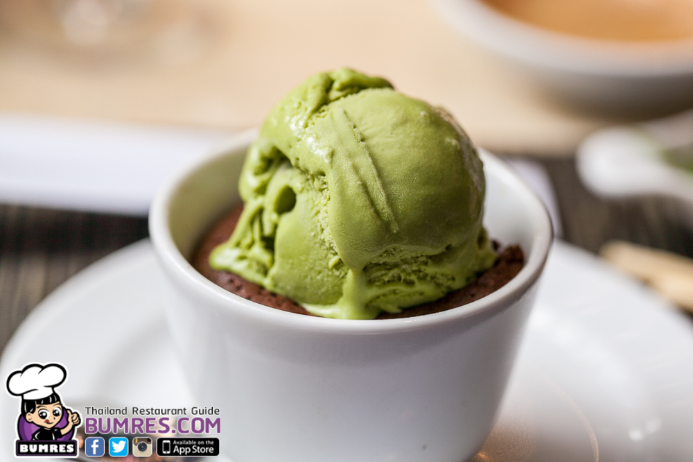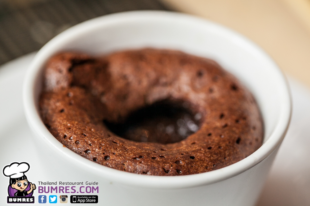 Chocolate lava จะเป็นช็อคโกแล็ตที่อบบมาในถ้วย แล้วก็นำมาอุ่นบน Teppan เพื่อให้ Dark Chocolate ด้านในละลาย เวลาตักกิน ด้านในก็จะเยิ้ม ๆ อร่อยมาก ใครจะกินกับไอศครีมก็ทำได้นะ โปะลงบนหน้า แบบนี้เลย