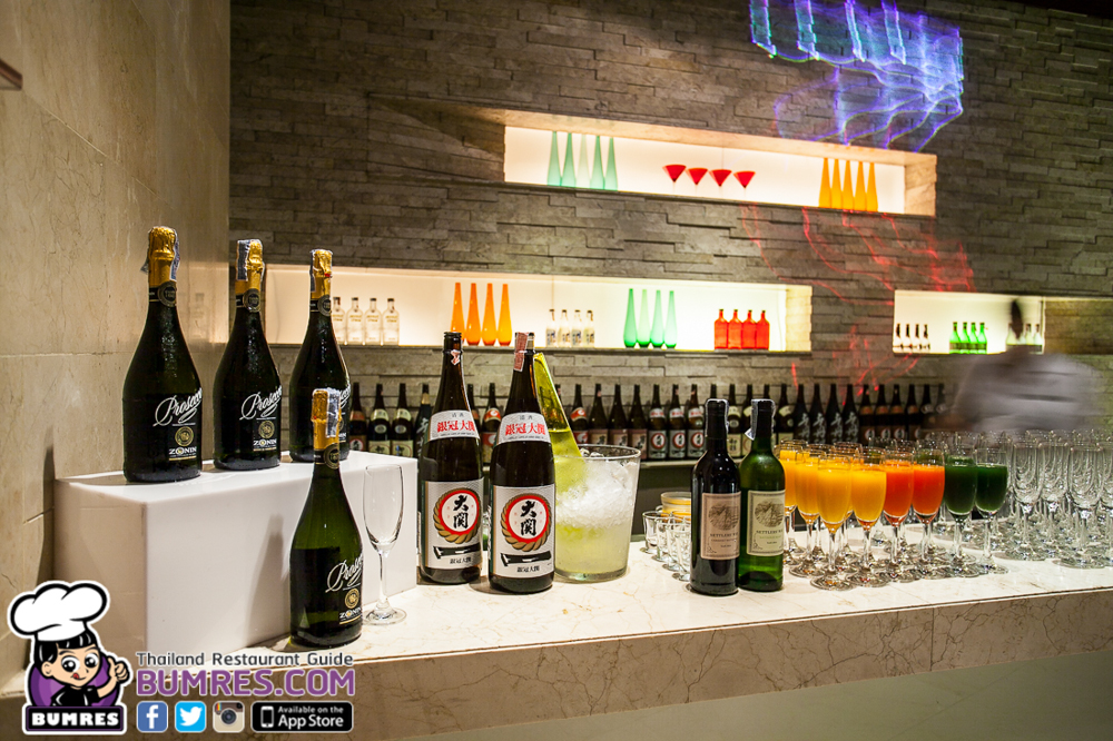มีให้เลือกหลากหลายมาก สั่งได้ทุกอย่างก็ว่าได้ สำหรับใครที่กิน แอลกอฮอล์ รับรองว่าคุ้มแน่ ๆ เพราะมีทั้ง ไวน์ขาว, ไวน์แดง, Sparkling Wine, สาเก และ เบียร์