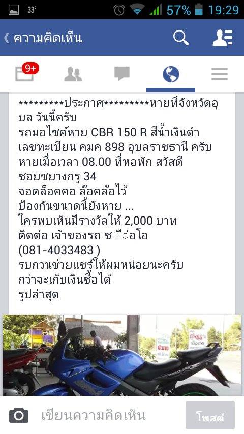 ขอความช่วยเหลือ และแจ้งเตือน รถหายที่อุบลฯ