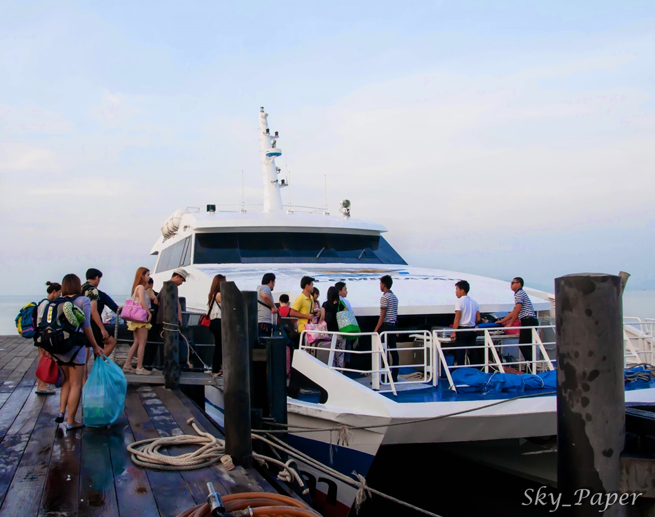 โดยเราเลือกเวลาเดินทางออกจากกรุงเทพ เวลา สามทุ่มนิดๆ (แต่รถออกจริงๆสองทุ่มกว่าๆ) ก็มีจอดแวะกินข้าวตอนดึกๆด้วยนะ (แต่เราไม่ได้ลงเพราะง่วง) ไปถึงท่าเรือของทางบริษัทก็ประมาณ ตีห้ากว่าๆ .... จะบอกว่า คนที่ไปรอก่อนหน้าเรานั้นเยอะมากกกกก ทั้งที่จองกับบริษัทไว้แล้ว กับ ที่ไปซื้อเอาวันที่จะข้ามเกาะเลย