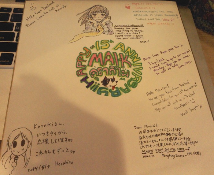 มีเมสเสจบอร์ด 2 แผ่นค่ะ มีคนช่วยกันเขียนไปแล้วส่วนหนึ่ง แต่ยังมีอีกแผ่นว่างๆ อยู่ อยากให้มาช่วยกันส่งความรักถึงไมจังมากๆ นะคะ