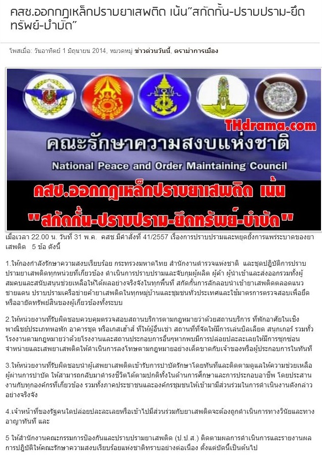คสช.ออกกฎเหล็กปราบยาเสพติด เน้น"สกัดกั้น-ปราบปราม-ยึดทรัพย์-บำบัด"