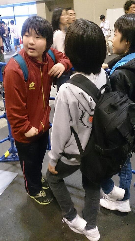 ทางเดินด้านหลังสำหรับเดินออกจะได้เห็นสาวๆ ในเลนอื่นด้วย ขอบอกว่าคุณหนูเอริกะออร่านรกแตกมาก ออร่าสูงสุดในวงยิ่งกว่าทั่นไมยันเสียอีก กัปปิตันเรย์กะตัวเล็กๆ น่ารักดี ไมไมหน้าเด็กกว่าในทีวีมาก วากาสึกิไม่ดูเป็นรูปหล่อเลย เซ็กซี่อีกต่างหาก