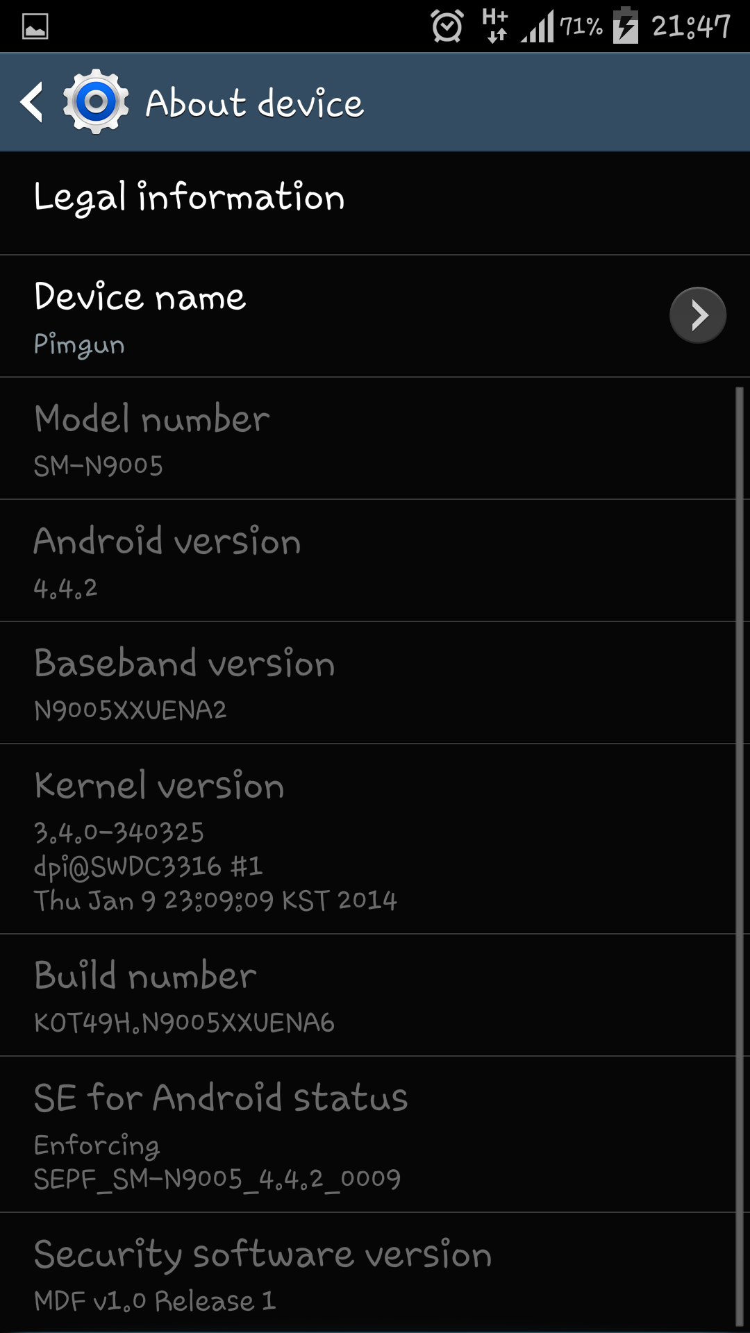 รบกวนสอบถามคะ note 3 LTE N9005 อยู่ ตรวจสอบเรื่องซิมกับทางดีแทคแล้วว่าเป็น 4 g พื้นที่ใช้งานที่บ้านก็เป็น4g แล้ว เพราะไอแพดวางข้างๆกันก็ขึ้น 4g (เป็นดีแทคเหมือนกัน)แล้วคะ แต่เครื่อง note ยังขึ้นเป็น H+ อยู่ ลองทำตามในหลายๆกระทู้ แล้วก็ยังไม่เป็น 4g คะ เขคเฟริมแวร์ก็ขึ้นว่าเดทล่าสุดแล้ว ตามรูปเลยคะ รบกวนผู้รู้แนะนำด้วยคะ ว่าต้องทำยังไงให้ขึ้น4g คะ เพราะเครื่องแฟนก็เป็นแบบเดียวกันคะ ขอบคุณมากๆคะ