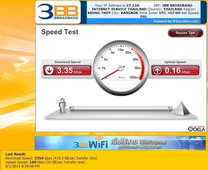 ความเร็ว internet 3BB ของที่บ้าน ไม่ถึง 10 Mb ครับ ได้แค่ ไม่เกิน 6 Mb