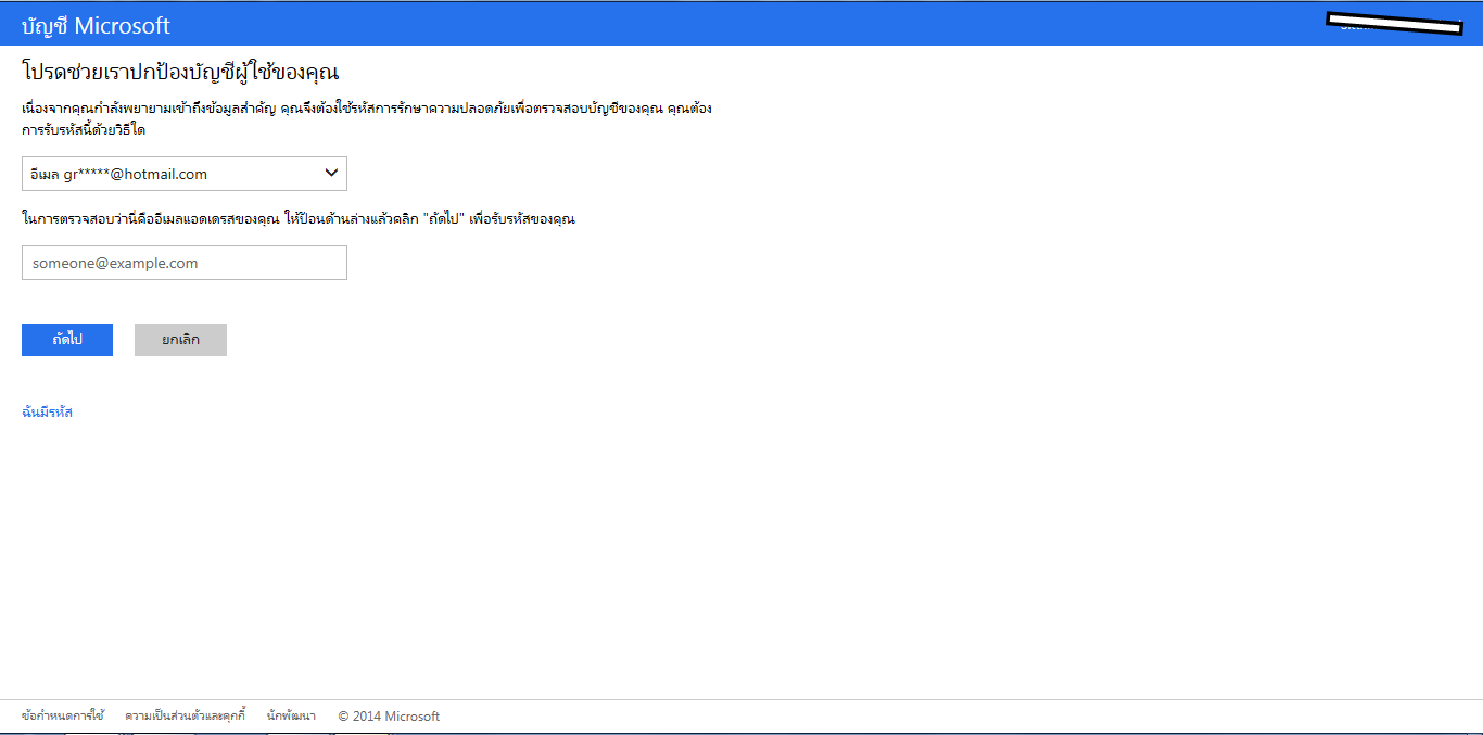 ข้อความรีเซ็ตรหัส facebook ไม่ส่งเข้า hotmail