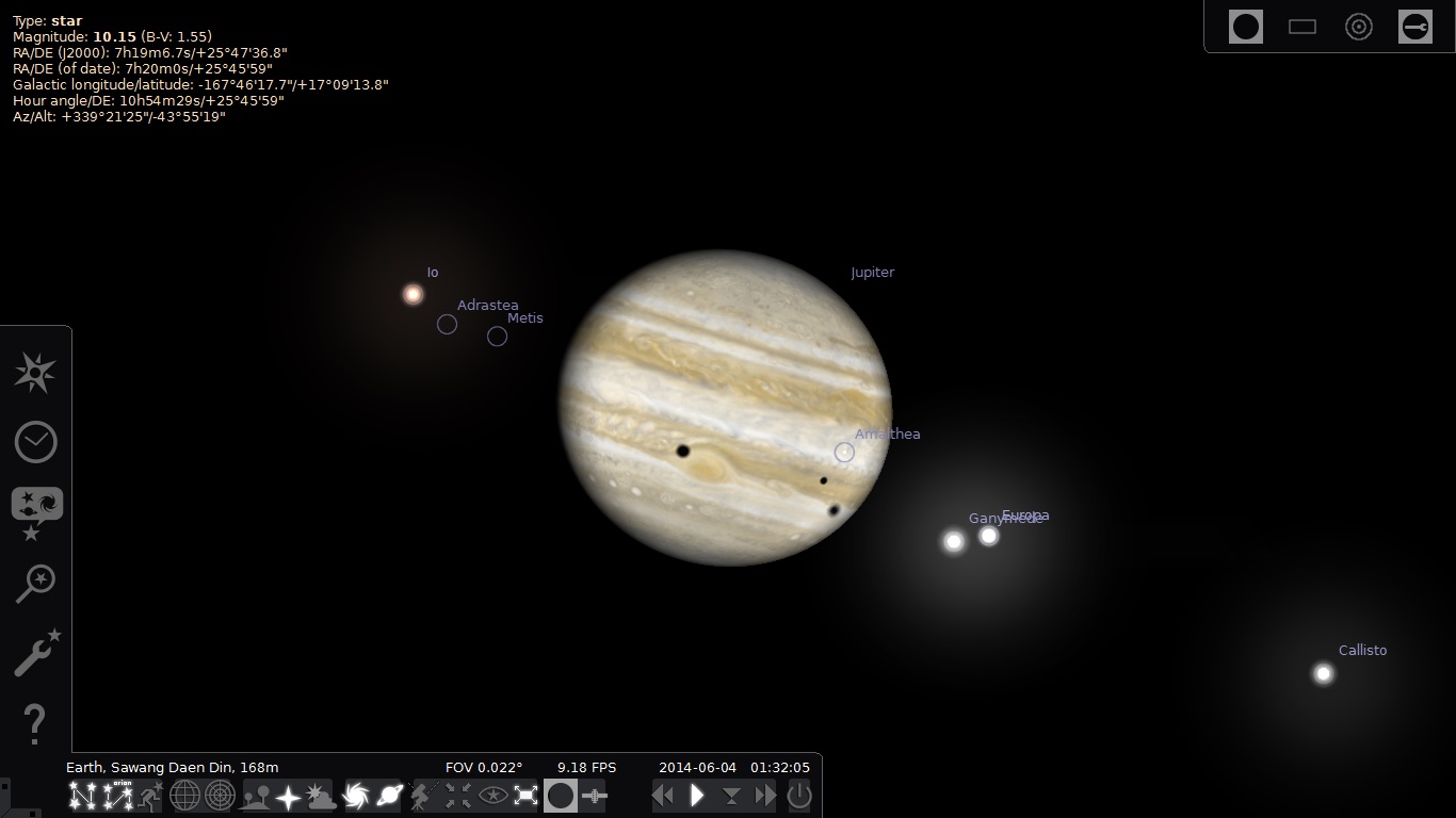 เงาของดวงจันทร์ขนาดใหญ่ 3 ดวงของดาวพฤหัส ( Callisto Europa and Ganymede) จะพาดผ่านพื้นผิวของดาวพฤหัส (Triple Shadow Transit) และ สามารถเห็น Great Red Spot ด้วย