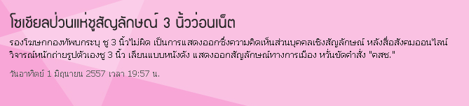 http://www.dailynews.co.th/Content/crime/241845/%E0%B9%82%E0%B8%8B%E0%B9%80%E0%B8%8A%E0%B8%B5%E0%B8%A2%E0%B8%A5%E0%B8%9B%E0%B9%88%E0%B8%A7%E0%B8%99%E0%B9%81%E0%B8%AB%E0%B9%88%E0%B8%8A%E0%B8%B9%E0%B8%AA%E0%B8%B1%E0%B8%8D%E0%B8%A5%E0%B8%B1%E0%B8%81%E0%B8%A9%E0%B8%93%E0%B9%8C+3+%E0%B8%99%E0%B8%B4%E0%B9%89%E0%B8%A7%E0%B8%A7%E0%B9%88%E0%B8%AD%E0%B8%99%E0%B9%80%E0%B8%99%E0%B9%87%E0%B8%95