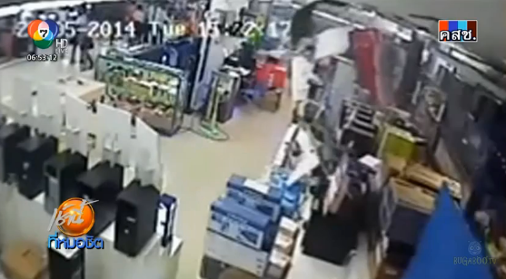 เงิบ!! พายุถล่มโคราช พัดตู้ทับพนักงานห้างไอทีบาดเจ็บ