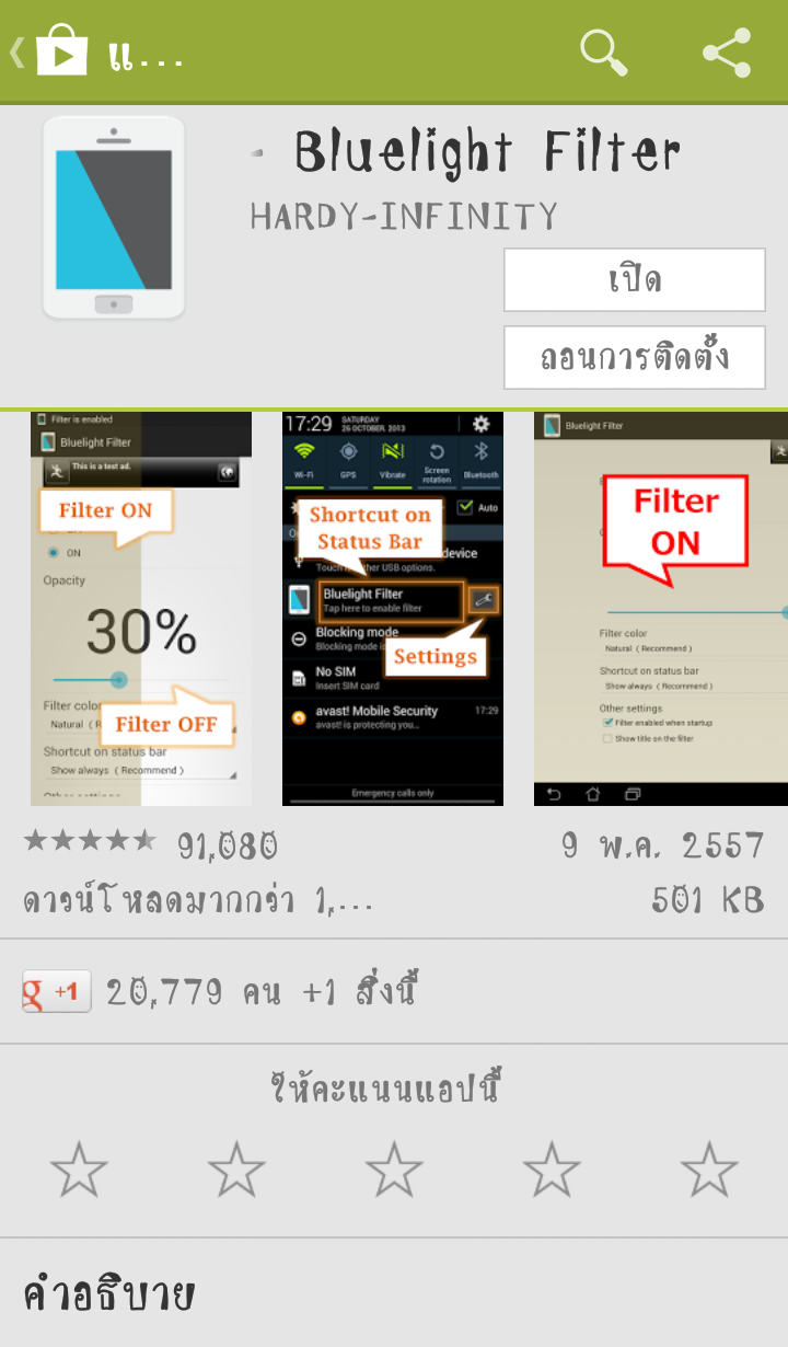 ขออนุญาตแนะนำแอพลดแสงหน้าจอนะครับ