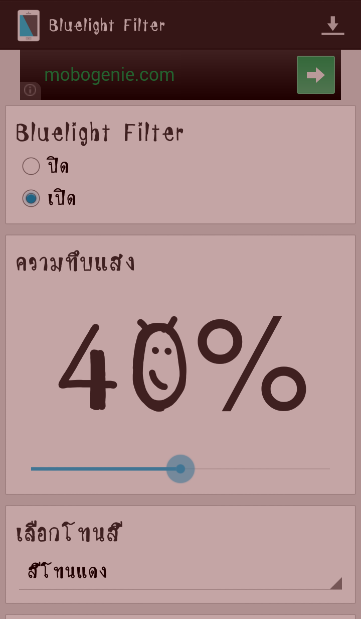 ประโยชน์ของแอพนี้ มันสามารถลดแสงหน้าจอให้มือถือของเราได้อีกครับ หรือสามารถเปลี่ยนโทนสีแสงหน้าจอได้อีกครับ การใช้งานง่ายมาก ตั้งค่าไม่กี่อย่างใช้งานได้ทันทีครับ