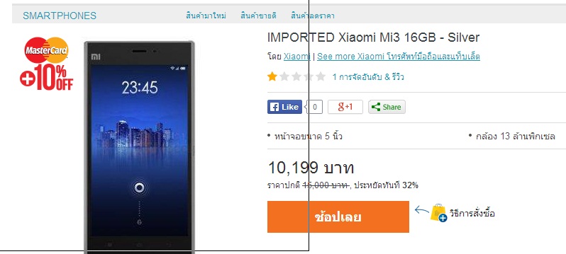 จัดดีมั้ยครับ ช่วยตัดสินใจทีกับ Xiaomi MI3 16G เวบ Lazada ใช้บัตรมาสเตอร์การ์ดลดได้ 10% จาก 10,199 บาท เหลือ 9,179 บาท แหม ราคาดีเหลือเกิน แต่ลังเลเหมือนกัน อยากรอศูนย์ไทย