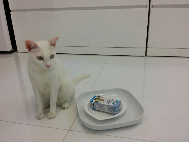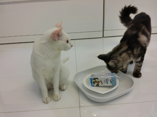คือเราตื่นมาวันนี้ว่าจะมาให้นมน้องค่ะ แต่ก่อนให้เราก็สงสัยแล้วว่าทำไมมันเป็นไขๆ ( นมแพะชงสำหรับแมวนะคะ ) เราเลยโทรไปถามคุณพ่อว่าชงนมยังไง คุณพ่อก็ชงปกติ เราเลยให้น้องทานไป แล้วก็เล่นกับน้องปกติ จนผ่าน