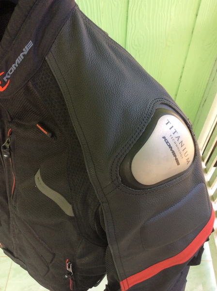ตั้งแต่ต้นคอ-ไหล่-ต้นแขนด้านนอกทำด้วยหนัง และมีเสริมโลหะที่พะตัวหนังสือไว้ว่า Titanium Technology ซึ่งโดยส่วนตัวก็ไม่ทราบหรอกครับว่าเป็น Titanium จริงหรือโดนพี่ยุ่นหลอก