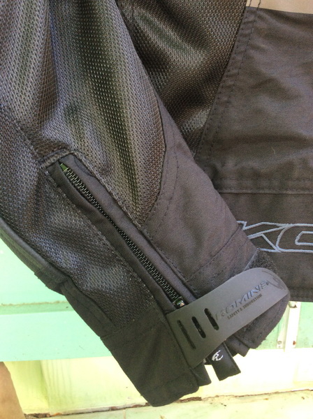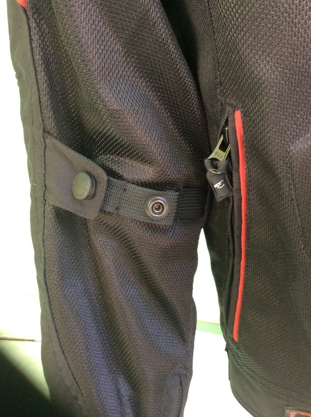 มีกระดุมแป๊กสำหรับปรับความยาวช่วงแขนได้ 3 ระดับ เพื่อให้บริเวณการ์ดศอกที่อยู่ภายในอยู่ตรงกับปลายศอกพอดี เหนือศอกเป็นผ้าที่เย็บไว้ในลักษณะที่สามารถยืดหยุ่นได้เพื่อความสะดวกในการเหยียด-งอแขน ตั้งแต่ปลายศอกลงไปด้านนอกทำด้วยหนัง