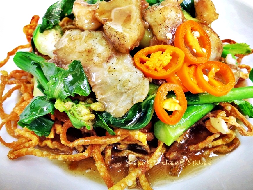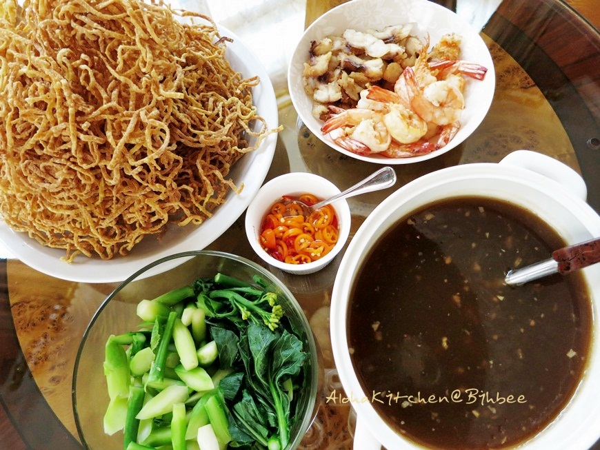 ถือเป็นเมนูกำจัดเส้นที่มีติดบ้านเป็นประจำ บะหมี่เหลืองกับเมนู "บะหมี่กรอบราดหน้า" นั่นเอง