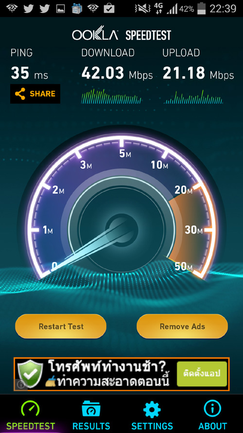 ผมก็นั่งเล่นมือถือมาเรื่อยๆตามปกติ ซึ่งก็สามารถจับสัญญาณ 4G ได้เป็นระยะๆ ตามภาพที่ 1