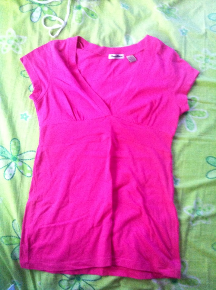 5.เสื้อยืดสีบานเย็น ผ้านิ่ม คอวี จำยี่ห้อไม่ได้ sz s อกได้ถึง36 สภาพ 85% ราคา 50บาท