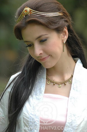 ทันใดก็ปรากฏร่างหญิงสาว เดินก้าวมายืนด้านข้างต้นไม้นั้น เธอส่งยิ้มหวาน ตาสีฟ้าใสฉายแววให้เห็น