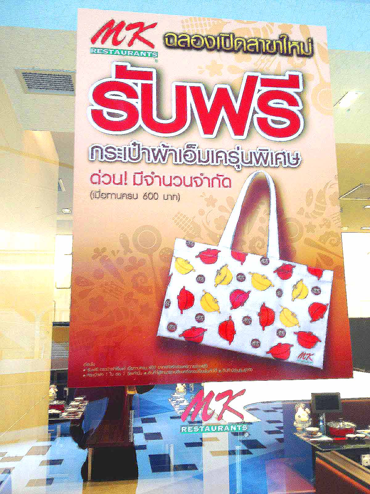 MK สาขานี้แถมกระเป๋าผ้า เมื่อทานครบ 600บาท