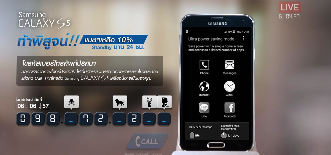 รบกวนหลังไมค์หน่อยครับ วันนี้ไขไม่ได้ตามเคย "ไขรหัสเบอร์โทรศัพท์ลุ้นรับ samsung S5 "