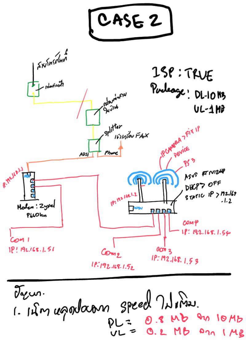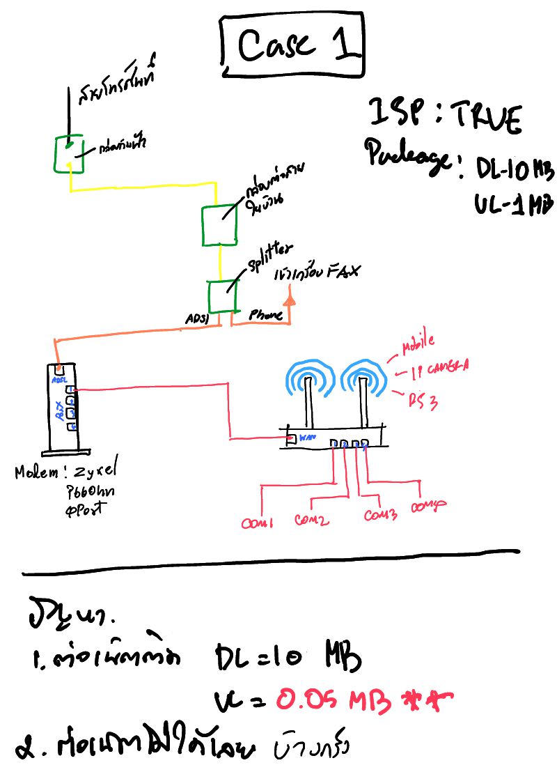 ปัญหาที่พบ ต่อเน็ตได้ ค่า DL มา 10 MB แต่ค่า UL มาแค่ 0.05 MB หรือในบางครั้ง ต่อเน็ตไม่ได้ ไม่มี IP ขึ้นจาก ISP