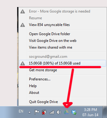 แต่ทำไม ในภาพที่ 2  จึงมีการแจ้งว่าใช้พื้นที่ไป 100 % หรือ 15 GB แล้ว