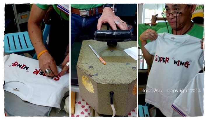 วิธีการทำไม่ยากครับ เลือกตัวอักษรหรือรูปแล้ว จัดเรียงให้ดูสวยงาม แล้วคนขายก็ใช้แผ่นทำความร้อนประทับลงไปเพื่อให้ลายติดไปที่เสื้อ