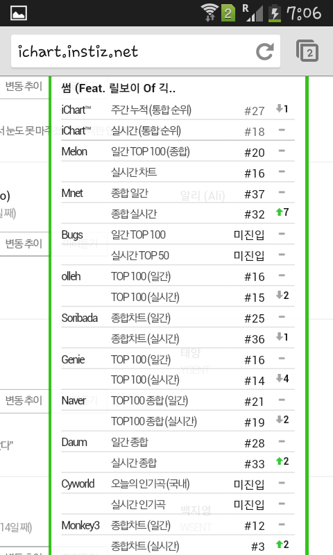 DIGITAL . . . . 1. ( +19 ) 2NE1 - Come Back Home 55,739,833 2. ( -1 ) Soyou X Junggigo - Some 51,413,256 3. ( +12 ) Girl's Generation - Mr.Mr. 45,751,147 4. ( +27 ) CN Blue - Can't Stop 37,134,798 5.