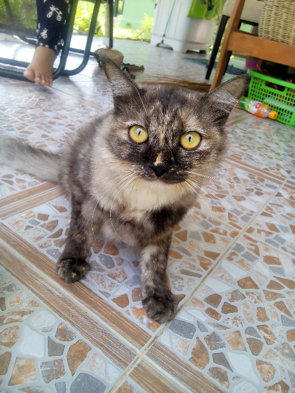 เป็นพันธุ์ผสมเปอร์เซีย สาเหตุที่หาบ้านเนื่องจากที่บ้านเลี้ยงเป็นระบบเปิด พอคนข้างบ้านเลี้ยงหมาเลยไล่กัดตายไปสี่ตัวแล้วครับ ผมไม่อยากให้แม่ทะเลาะกับคนข้างบ้านด้วย เลยตัดสินหาคนที่รักแมวมาดูแลต่อน่าจะดีกับมันมากกว่า