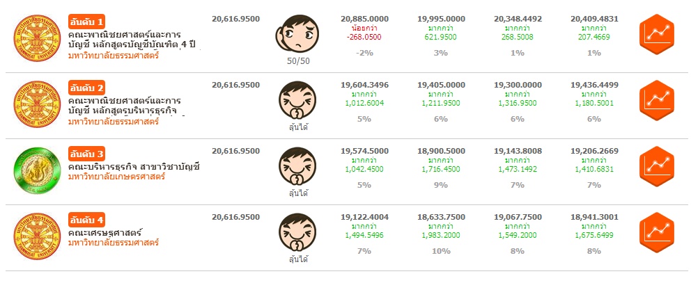 คือเราเครียดมากๆกับการเลือกคณะร้องไห้บ่อยมากถ้ามีใครถามเรื่องแอด คือเราจัดแบบนี้ อันดับ1 มีปี56 58 ที่ติดลบ600กว่าๆ ปี57 59 บวกประมาณ200กว่าๆ อันดับ2 บวกทุกปีแต่บางปี600 400 300 200 กว่าๆประมาณนี้ อัน